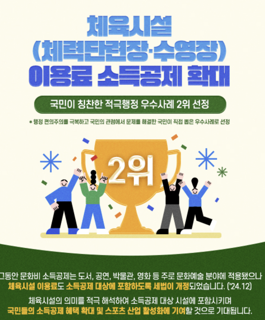 운동을 하며 건강을 챙기고 세금 혜택도 함께 받는 셈입니다.