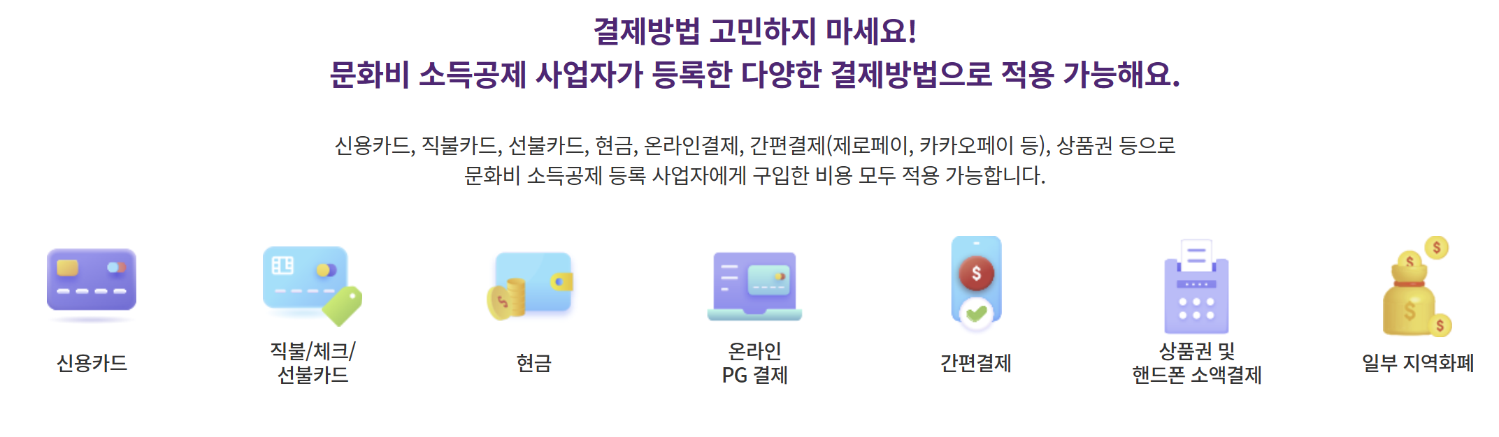 그리고 신용카드, 체크카드, 현금영수증 등으로