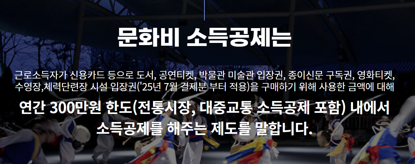 다양한 문화활동 지출에 대한 문화비를 연말정산 시 공제를 받을 수 있습니다.