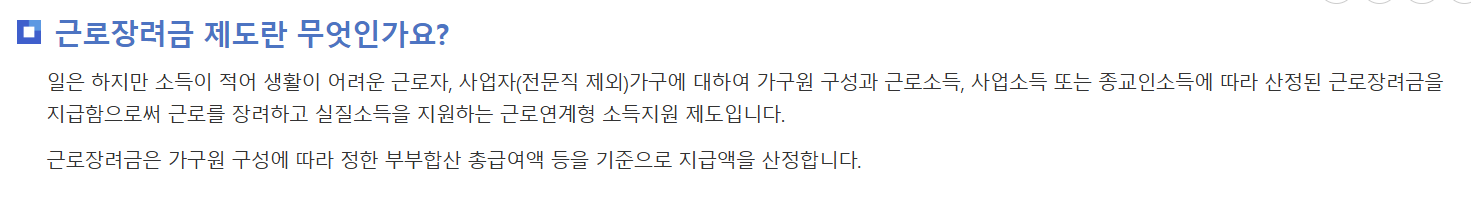 소득이 적은 근로자, 사업자, 종교인이 스스로 일하며 생활을 유지할 수 있도록 돕는 제도입니다.
